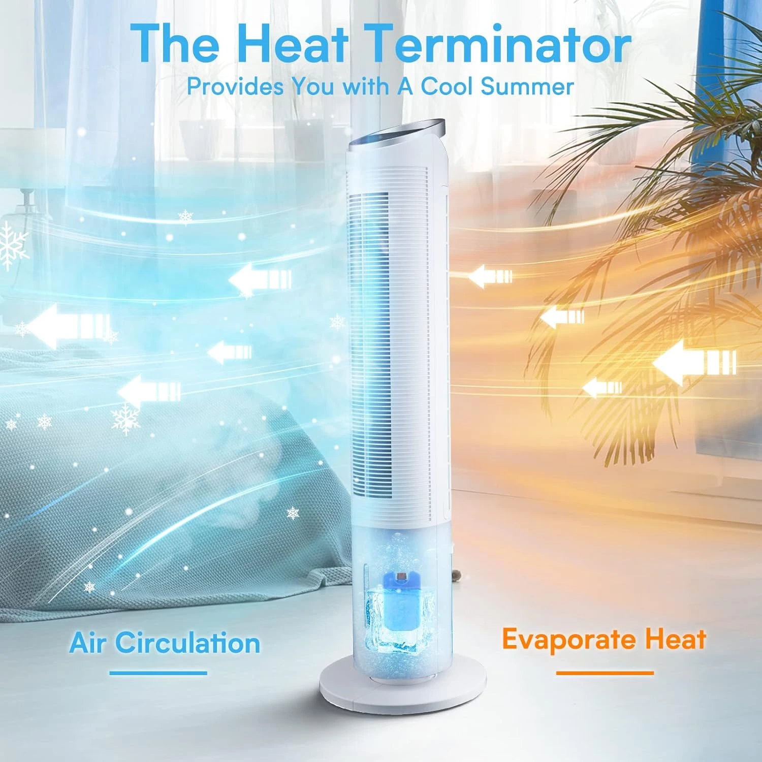 - COOLING AND HUMIDIFYING, ALL IN 1 – Trustech portable air cooler can be used alone or as an evaporative air cooler. With a water curtain system that has a 2L tank capacity and 2 ice boxes, the swamp cooler can provide you with up to 120 sq. ft. of air circulation in a fresh and cool way. This cooling fan can dry air absorbs cool moisture to produce a comfortable temperature, and the evaporative air cooler provides you with an effective cooling way in the summertime.