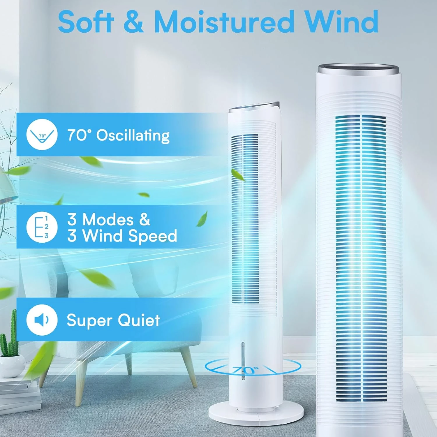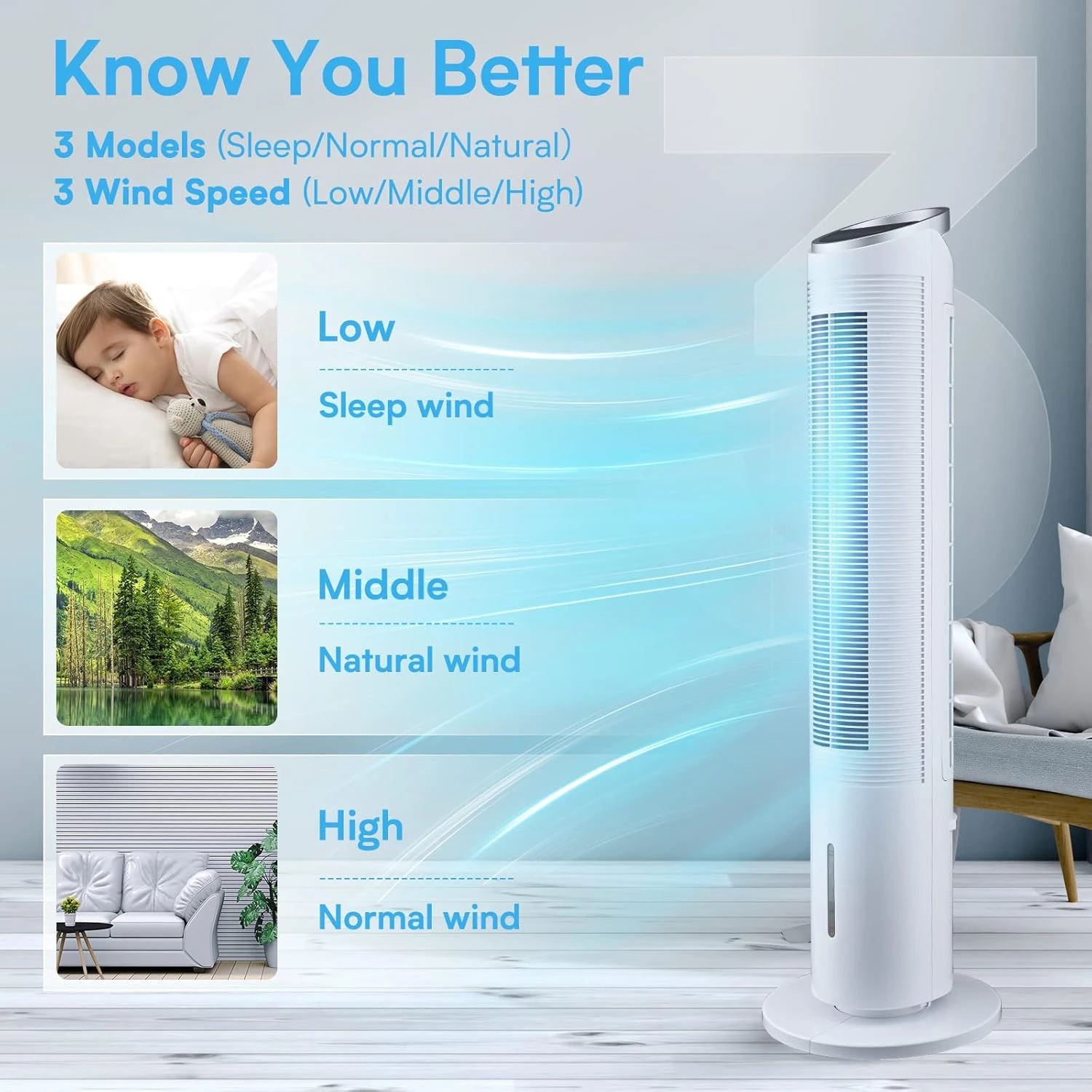 - MULTI-FUNCTIONAL COOLING FAN – 70°Oscillating portable air cooler benefit to improve any circulation for a wider area; This portable cooling fan featured 3 modes (normal wind/natural wind/ sleep wind) and 3 wind speed settings (low/middle/high) for personal enjoyment; Our swamp cooler’s long-timer function enables programmable shutdown up to 8 hours, Trustech boxes fan can help you to have sweet dreams and peaceful sleep by ultra-quiet function.The best portable air cooler for your room.