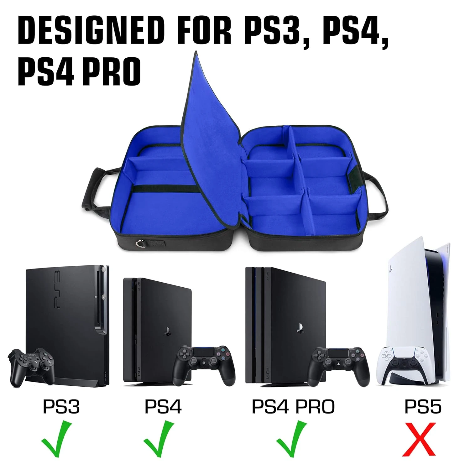 USA GEAR Console Carrying Case – PS4 Case Compatible With Playstation 4 Slim, PS4 Pro, And PS3 – Customizable Interior Stores PS4 Games, PS4 Controller, PS4 Headset, And More Gaming Accessories (Blue)