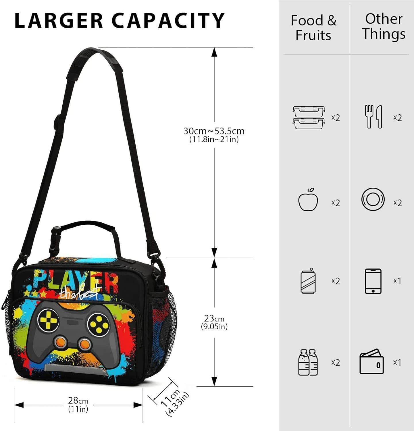 - Useful Design:This lunch box with detachable buckle hand strap can be tied to any backpack, With long straps can carry or side shoulder. Inside has a mesh pocket to put ice packs to keep cold temperatures whole day.