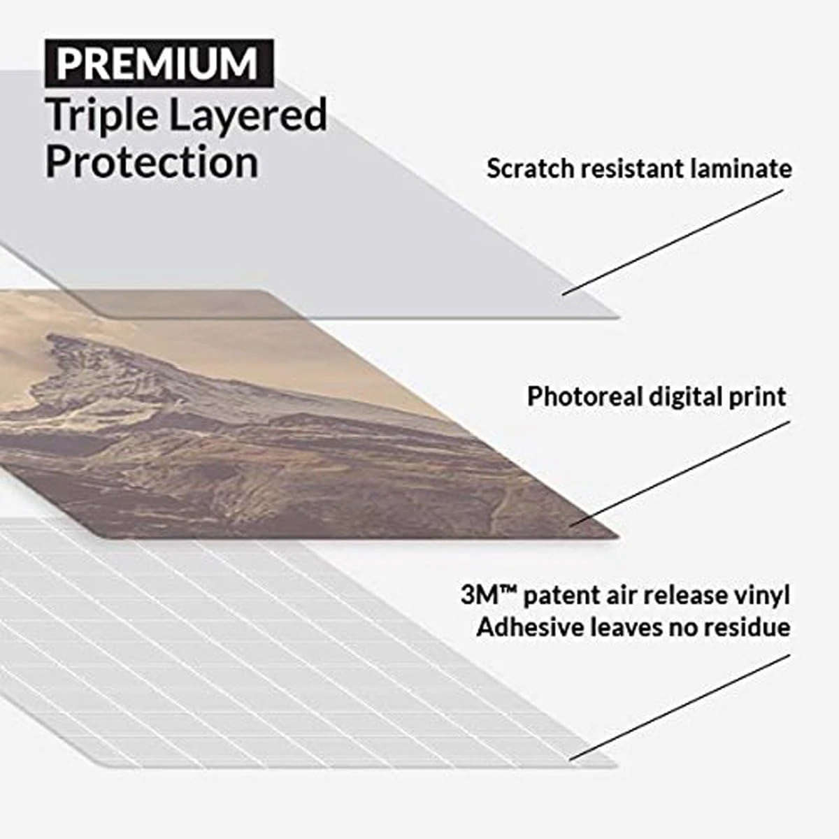 - TOP QUALITY VINYL SKINS – The protective vinyl skins are printed with super-high resolution graphics and ultra viscosity. There is premium triple layered protection, one with scratch-resistant laminate, the second is photo real digital print, and the last layer is air-release vinyl. The adhesive leaves no residue.