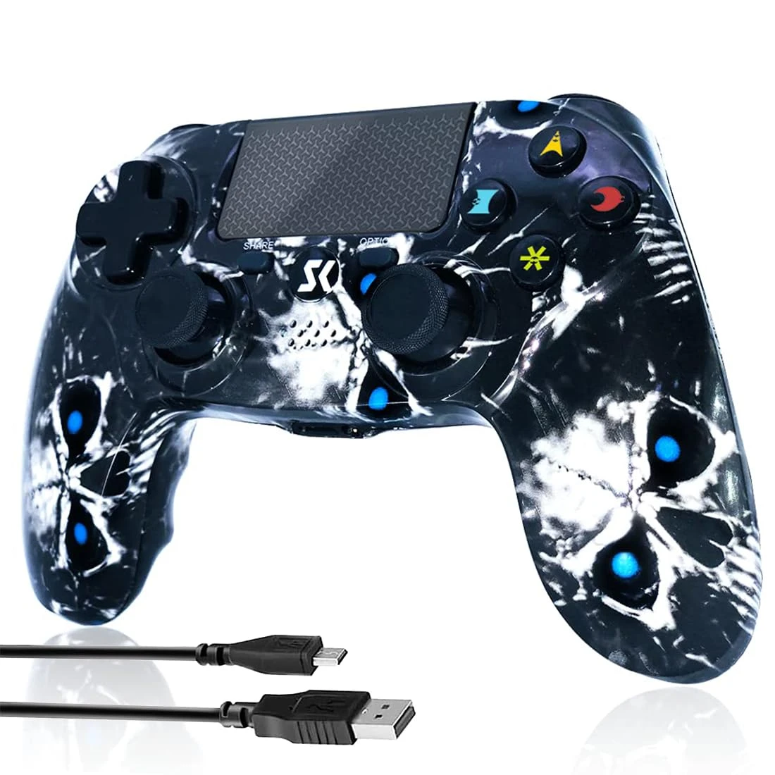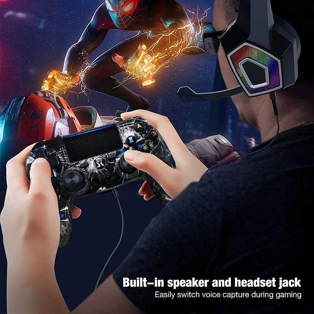 - 【Play Like A Pro】Black Ghost Style Controller Compatible with PS4/Pro/Slim.(NOTE: this is Third-party products;For better audio experience,please set up use USB cable on communication method of Settings).