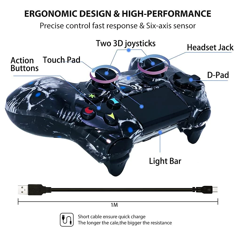 - 【Realistic Vibration and Motion Sensor 】Has built-in double Motion motors, which gives you different intensity feedback.Feature of the latest 6-axis motion sensor and vibration technology, the black skull series controller offers fantastic gaming experience.