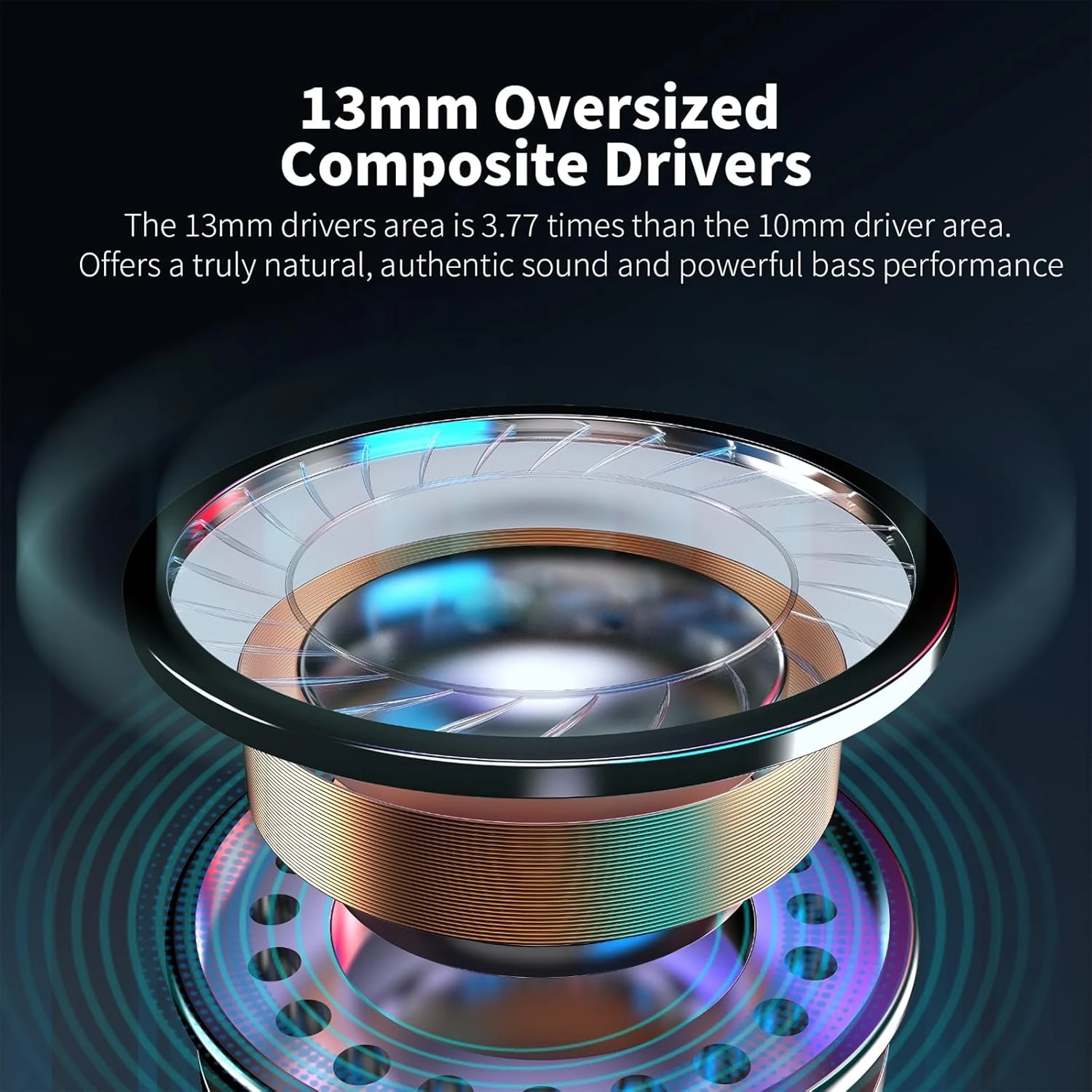 - 【Crystal Clear Sound & Calls】Engineered with a 13-mm speaker driver, wireless headphones keep the sound crisp with deep bass and deliver an immersive sound experience. Bluetooth earbuds have built-in MEMS microphones and a noise reduction algorithm that picks up your voice and filters out background noise. Best choice for relaxing and business.