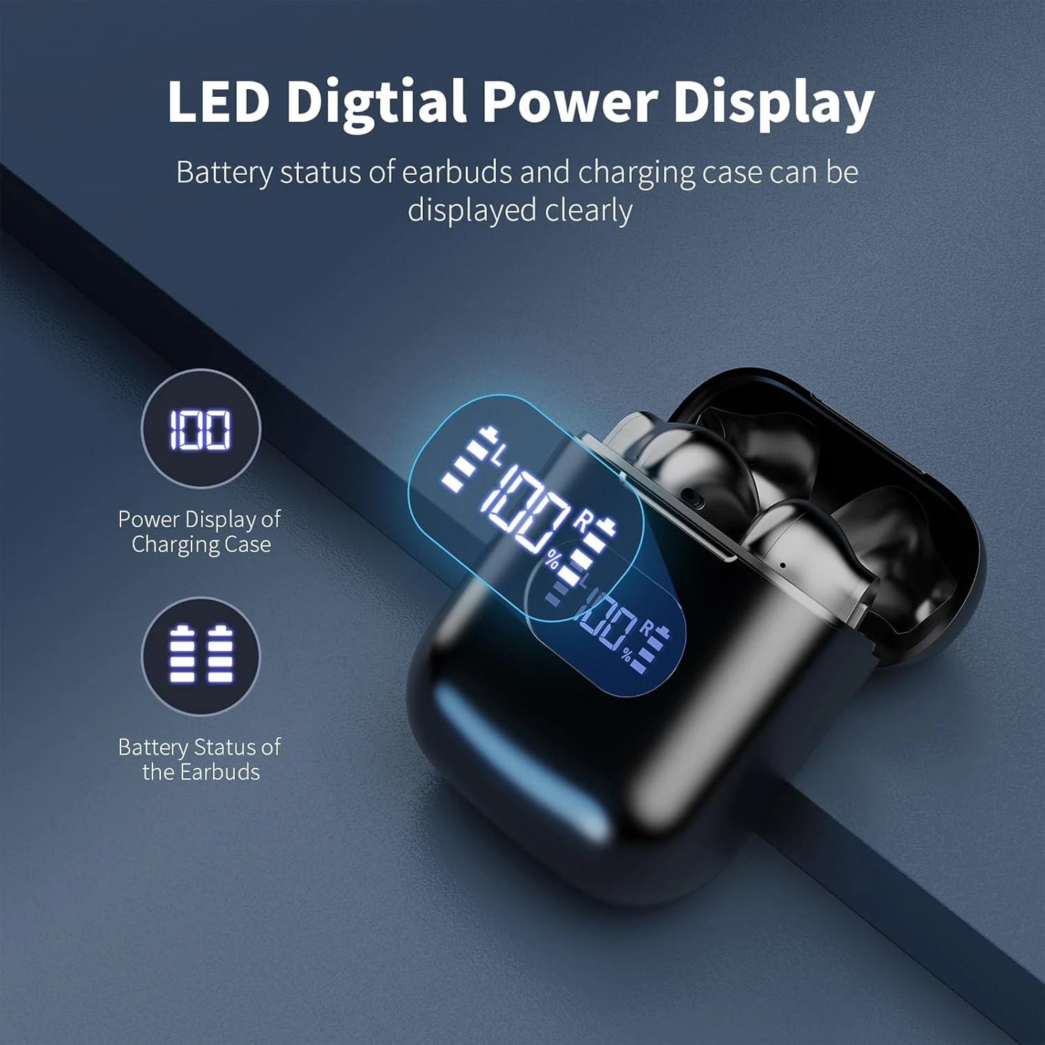 - 【Digital Battery Display】 CXK wireless earbuds are equipped with a smart LED digital display that indicates the remaining battery percentage from 1% to 100%. This feature ensures that you can easily track the battery level at any time. Each earbud has separate power consumption indicators, each grid represents 25% power of wireless earbuds.