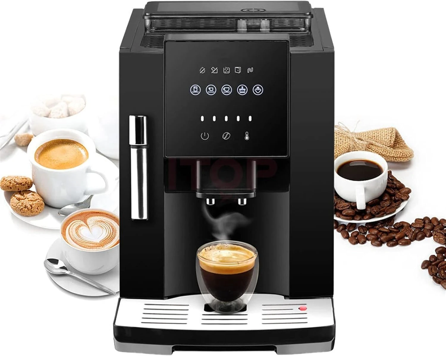 - Adjustable coffee humidity: high, medium, low.Separate hot water and milk froth system.